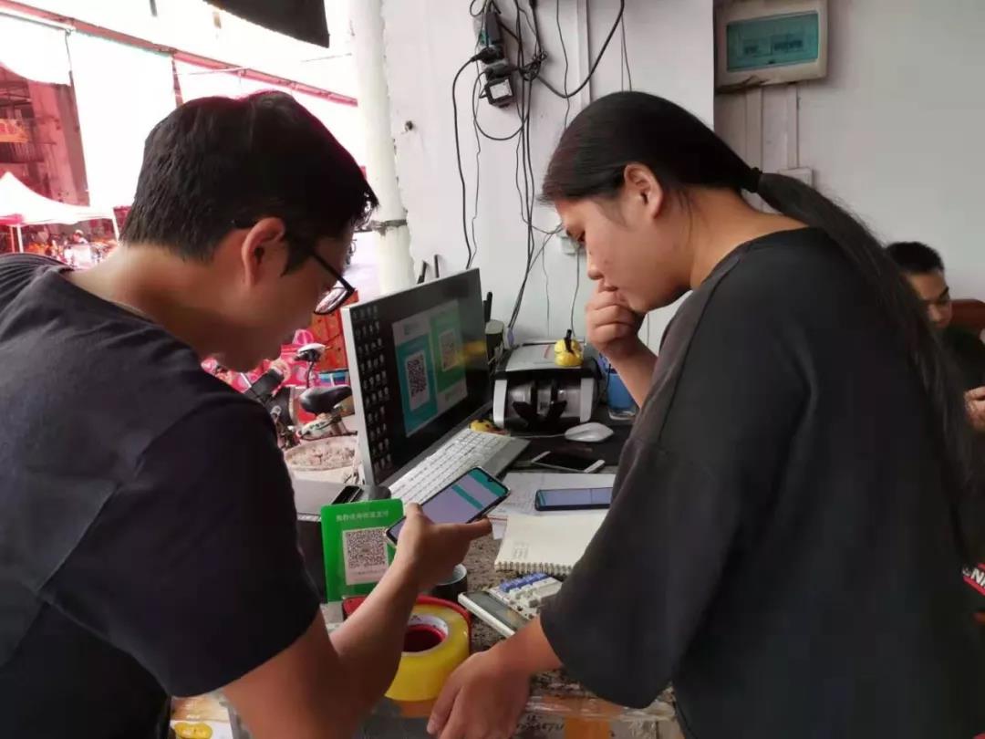 实施部成员为档口负责人讲解系统细节。